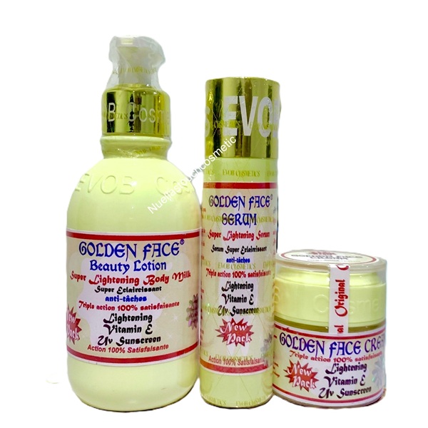 Golden Face Beauty Set is a triple action body oil formulated to fade away dark spots and brighten dull skin. Fortified with essential oils, Vitamin E and UV sunscreen to protect your skin against harmful sun rays and to prevent further skin skin darkening. This lightening oil leaves your skin soft, clearer and glowing.