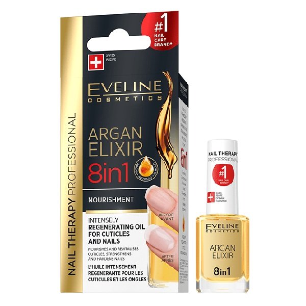 - Concentrated, quickly absorbing formula of the elixir with a unique combination of pure argan, avocado, and almond oil was developed for intense nails and cuticles regeneration.
