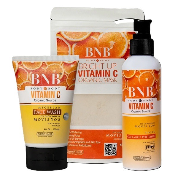 Includes: 1x Vitamin C Face Wash, 1x Collagen Polisher, 1x Vitamin C Glow Mask