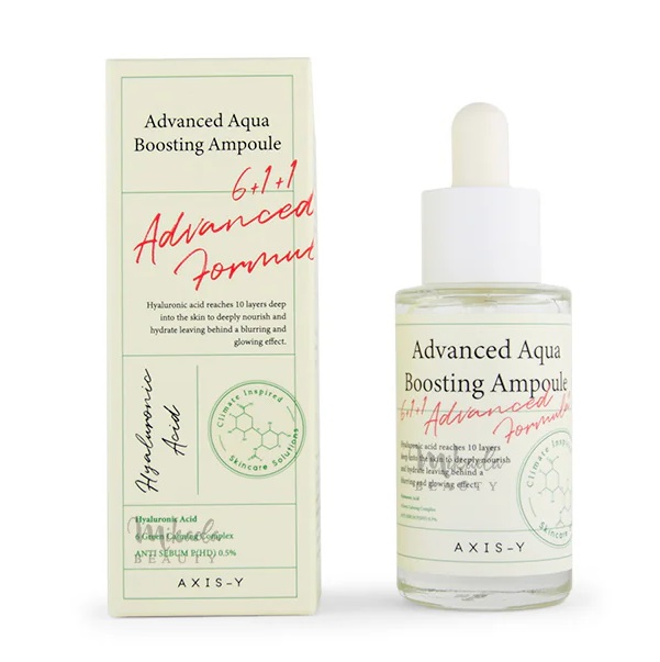 Axis-Y Advanced Aqua Boosting Ampoule is a deeply hydrating serum formulated with marine-based ingredients and hyaluronic acid. It provides intense moisture, helps to retain hydration, and improves skin elasticity. This ampoule leaves the skin feeling plump, smooth, and refreshed, making it ideal for dry and dehydrated skin.
