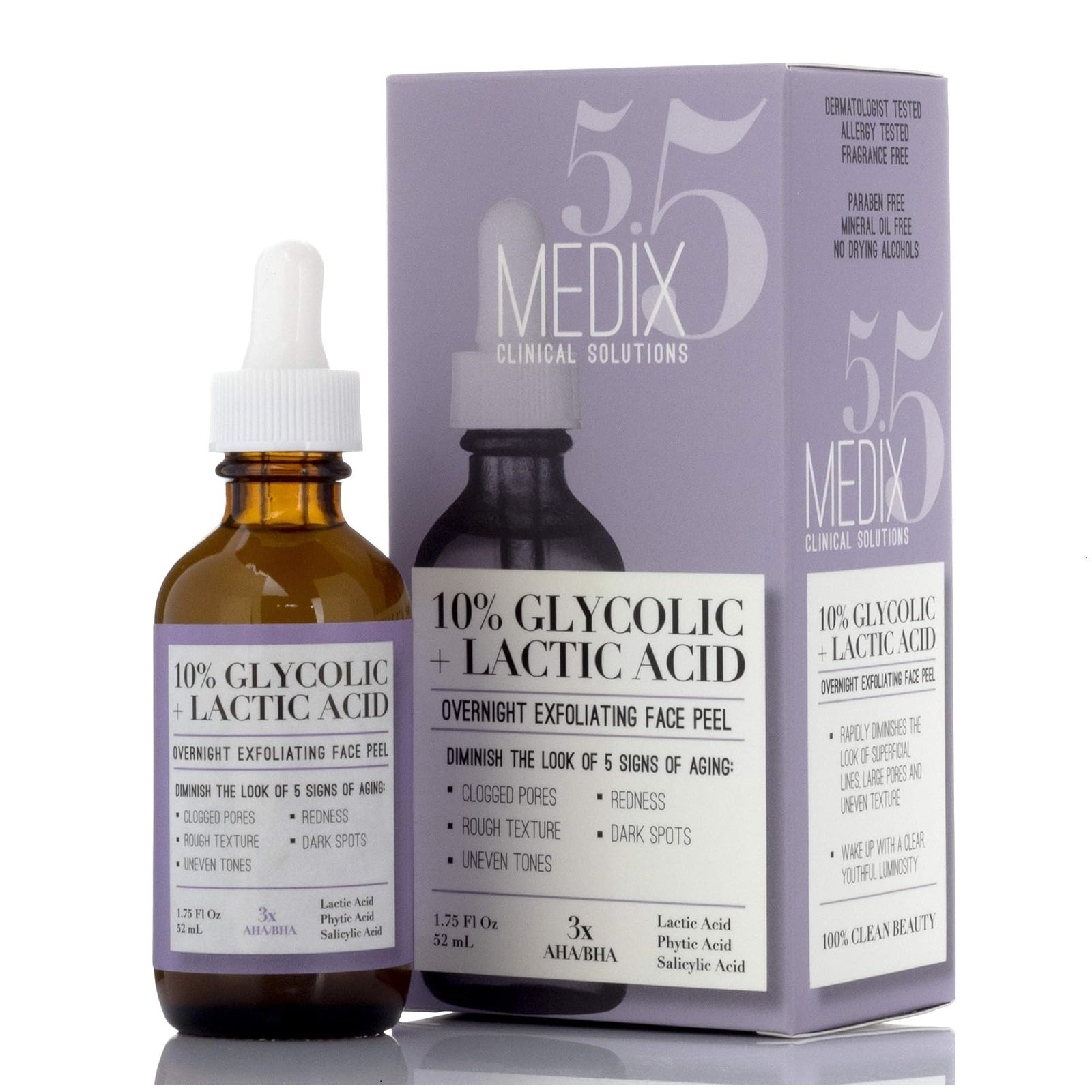Medix 5.5 10% Glycolic Acid Face Peel Exfoliating Serum W/Lactic Acid + Salicylic Acid 52ml
